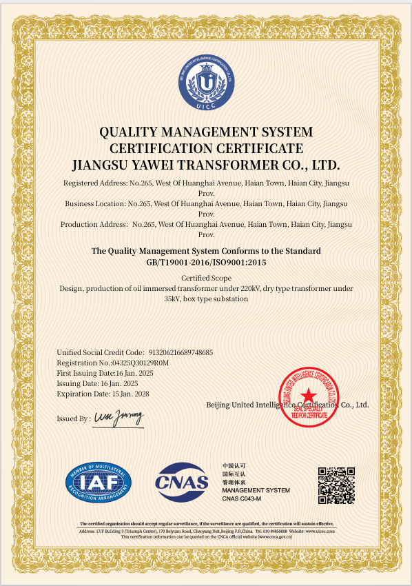 Трансформеры с нефтью Явей: двойная приверженность качеству и соответствию Трансформаторы Yawei придерживаются строгих стандартов качества, посвященных доставке трансформаторов, связанных с нефтью, известными своими надежностью и исключительной...